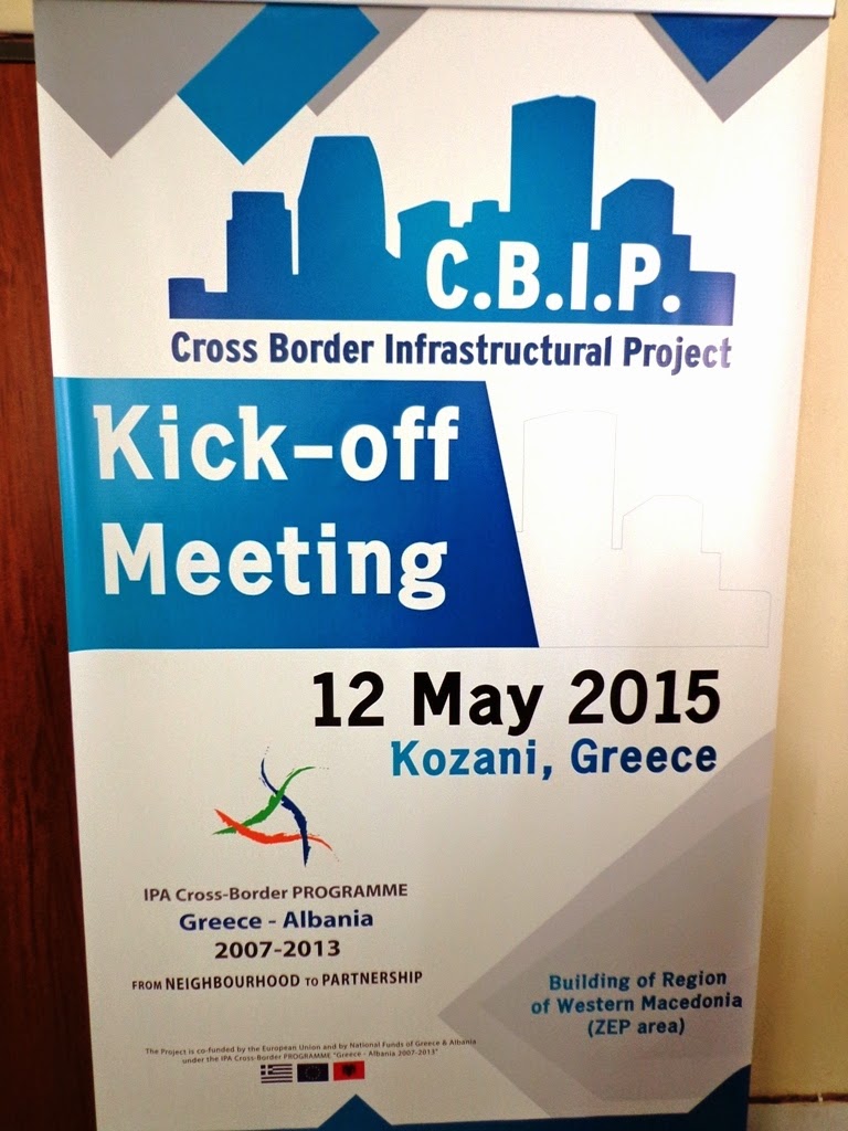 Εναρκτήρια συνάντηση των εταίρων του έργου C.B.I.P “Cross Border Infrastructural Project” πραγματοποιήθηκε την Τρίτη 12.05.2015 στην Περιφέρεια Δυτικής Μακεδονίας, στο πλαίσιο του Διασυνοριακού Προγράμματος Ελλάδας – Αλβανίας 2007-2013 και στο θεματικό πεδίο 1: Ενίσχυση της Διασυνοριακής Οικονομικής Ανάπτυξης, ως μέρος του Μέτρου 1.4: Διευκόλυνση της προσβασιμότητας των συνόρων μέσω υποδομών μικρής κλίμακας.