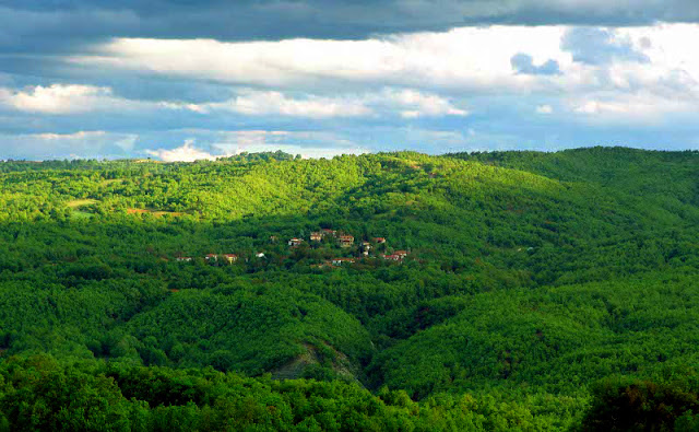Πλατύφυλλες οξιές, μεγάλες βελανιδιές και γέρικες καστανιές ορθώνονται αγέρωχες, δημιουργώντας ένα μεγαλοπρεπές σκηνικό.